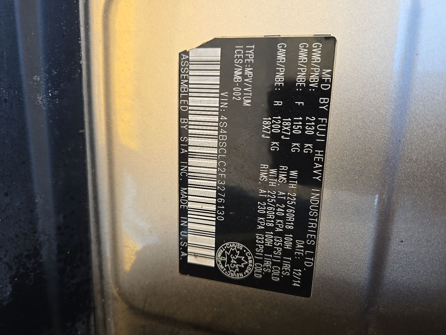2015 Subaru Outback 2.5i Limited