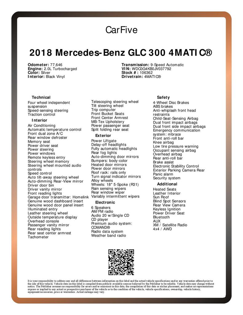 2018 Mercedes-Benz GLC 300 4MATIC