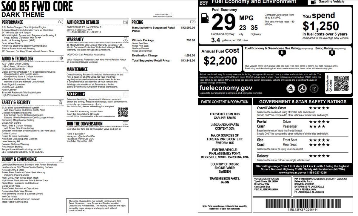 2024 Volvo S60 B5 Core Dark