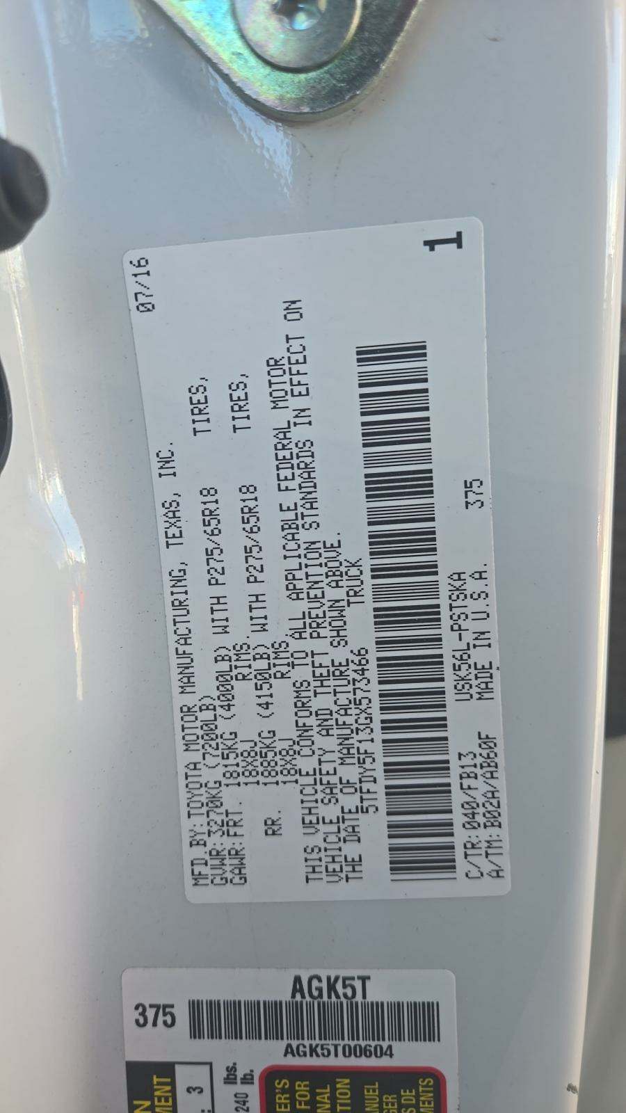 2016 Toyota Tundra SR5 Crew Cab Extra Short Bed