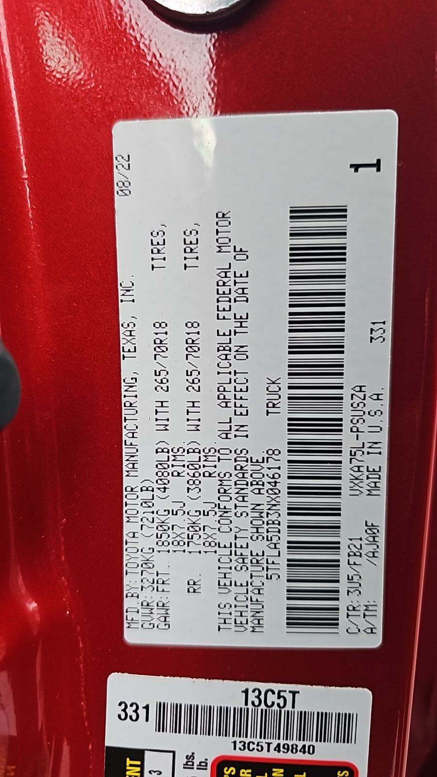 2022 Toyota Tundra SR5 Crew Cab Extra Short Bed